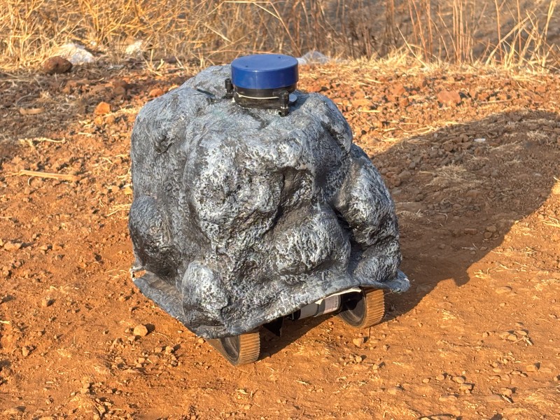 Design and Development of an Autonomous Mobile Robot With Camouflage Stone for Surveillance Using YOLOv8 and ROS2